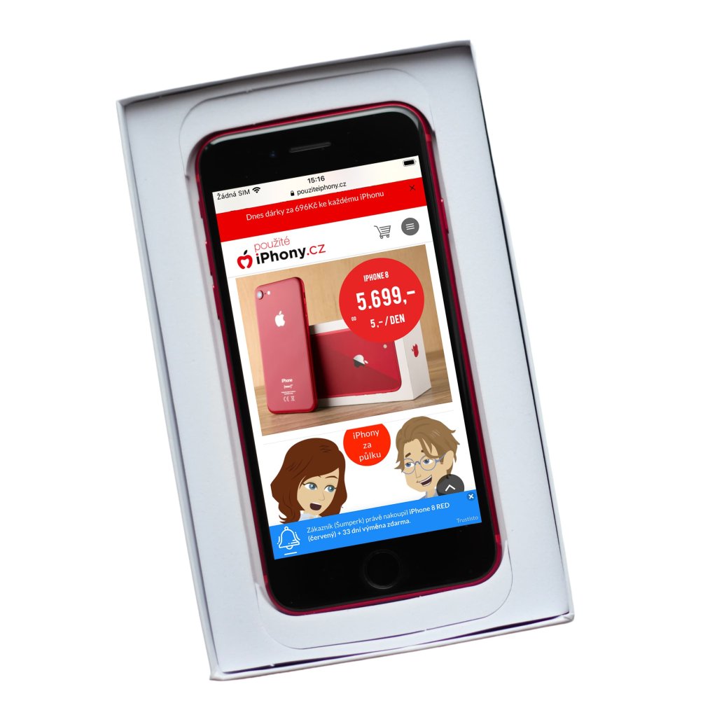 Nová bílá krabička s logem PouziteiPhony.cz pro iPhone včetně jehly na vyjmutí SIM karty.