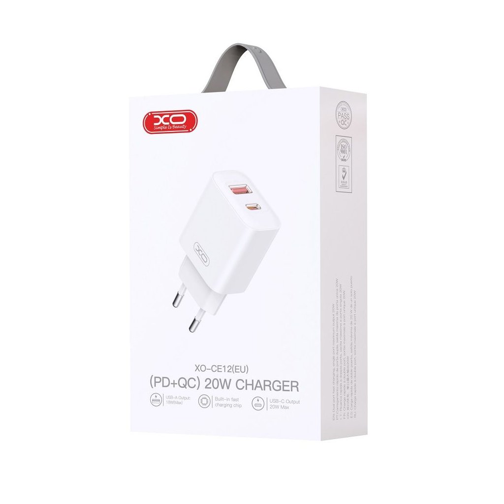 Značková rychlonabíječka XO s GaN technologií a 2 konektory USB-A s výkonem 20W a podporou PD Quick Charge 3.0 pro maximální rychlost nabíjení bez jakéhokoliv rizika poškození baterie. Nabíjecí sada funguje se všemi typy iPhone s konektory Lightning a iPady s konektory Lightning. Splňuje všechny bezpečnostní prvky pro bezpečné nabíjení jako s originální nabíječkou pro vaše zařízení.